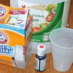 - Place the cup in the hole and fill the cup half way with baking soda.